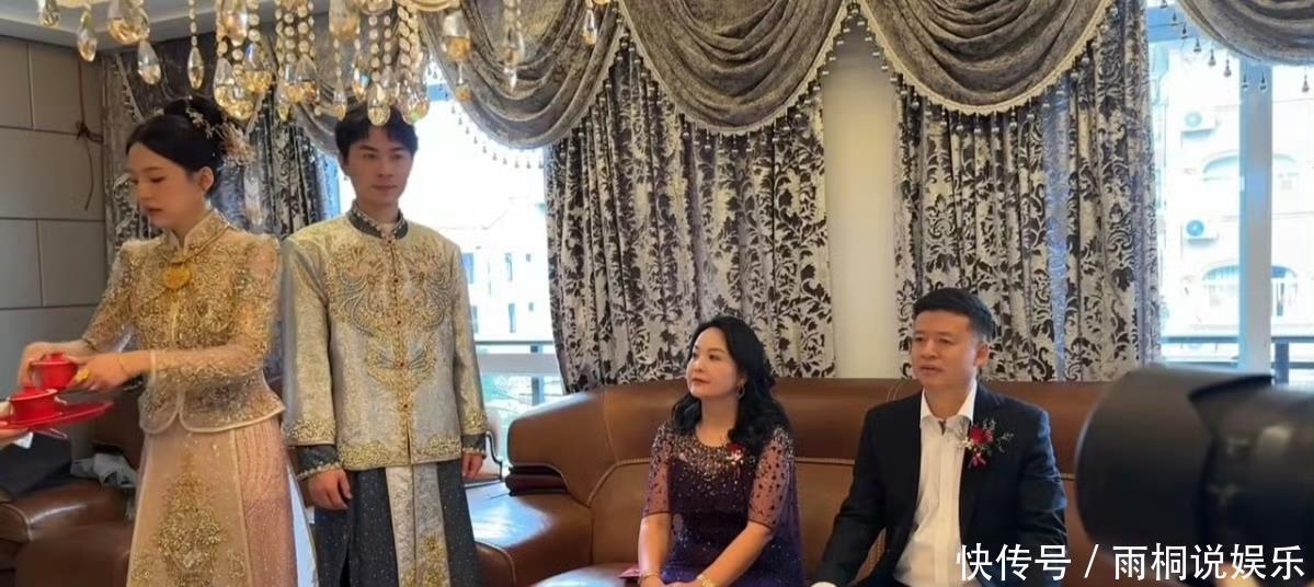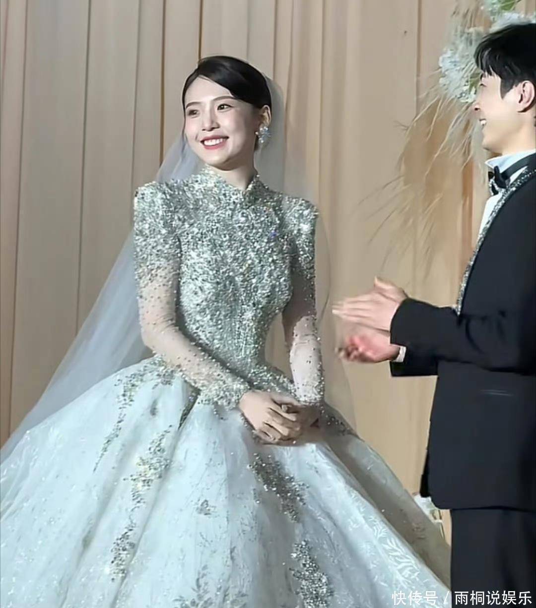据说妹妹的婚礼采用中西合璧的方式,现场其穿着银色的婚纱,身材姣好,与新郎在一起特别幸福。